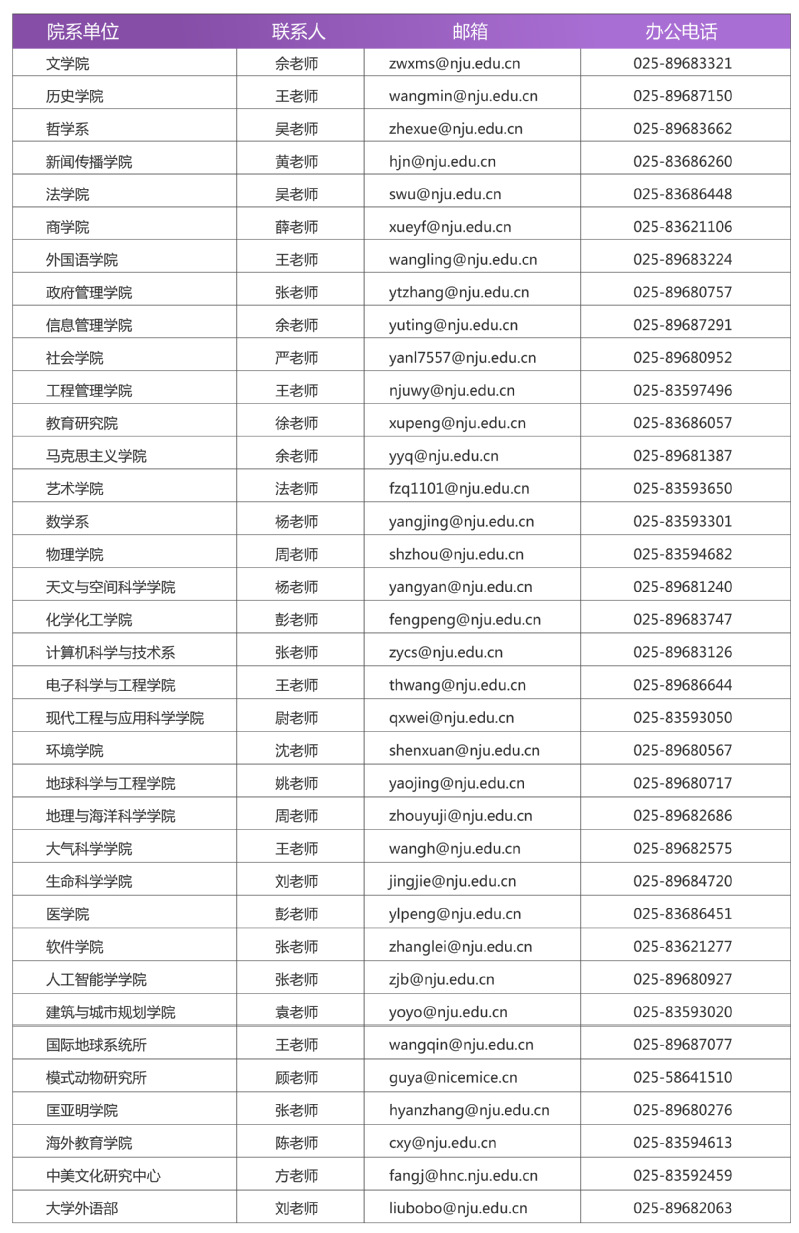 ![]() 有意者可垂询南京大学人才引进办公室或各相关院系单位。 联系方式: 周老师、刘老师:86-25-89686783 胡老师、王老师:86-25-89680253 梁老师、赵老师:86-25-89687256 邮箱:rcb@nju.edu.cn 院系单位联系方式: |