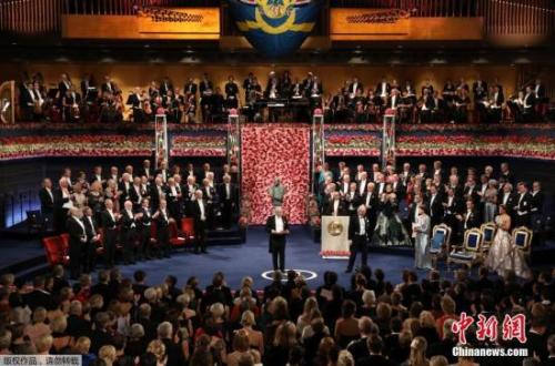 资料图:当地时间2016年12月10日,2016年诺贝尔物理学奖、化学奖、生理学或医学奖、文学奖和经济学奖颁奖仪式在瑞典首都斯德哥尔摩举行。