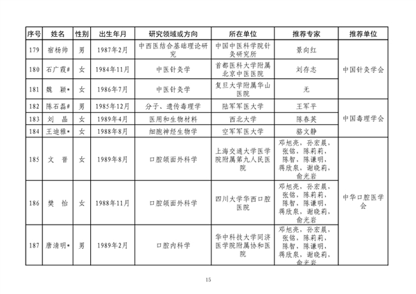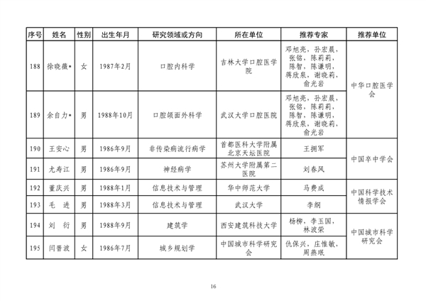 姓名后标注*者,为各推荐单位自筹资金支持的科技工作者;姓名后标注#者,为按规定可适当放宽年龄的女性或医学领域科技工作者。