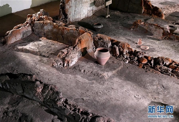这是河南郑州大河村遗址博物馆内的仰韶文化房基(12月11日摄)。新华社记者 李安 摄