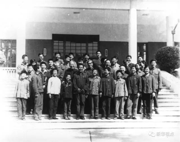 严济慈、吴文俊、马大猷、钱临照、杨海波和少年班学生在一起